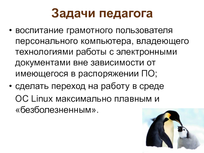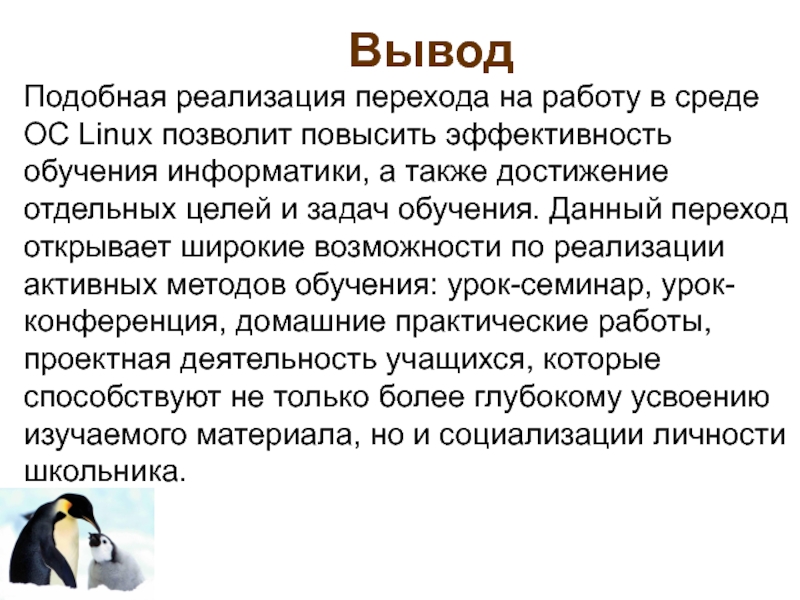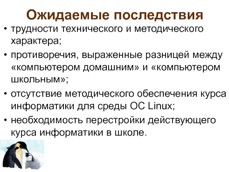 отсутствие методического обеспечения курса информатики для среды ОС Linux;