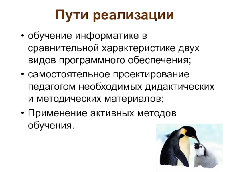 обучение информатике в сравнительной характеристике двух видов программного обеспечения;