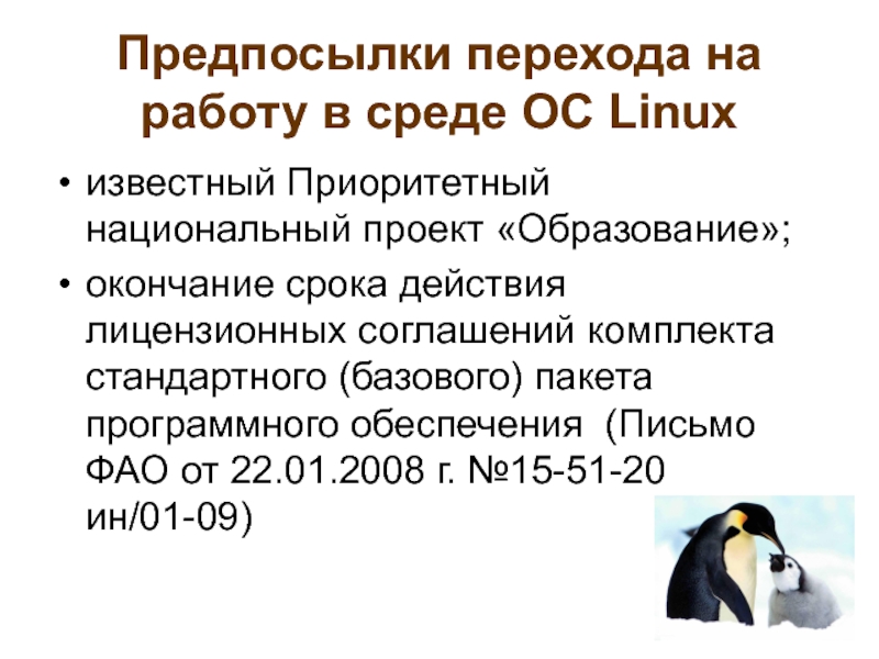 Слайд 3Предпосылки перехода на работу в среде ОС Linux