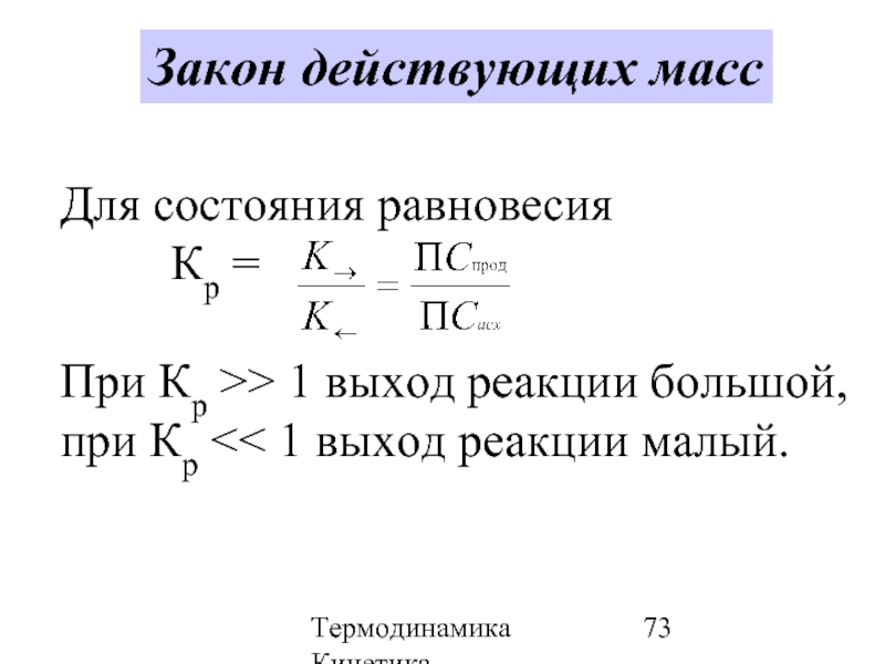 При Кр >> 1 выход реакции большой, при Кр << 1 выход реакции малый.