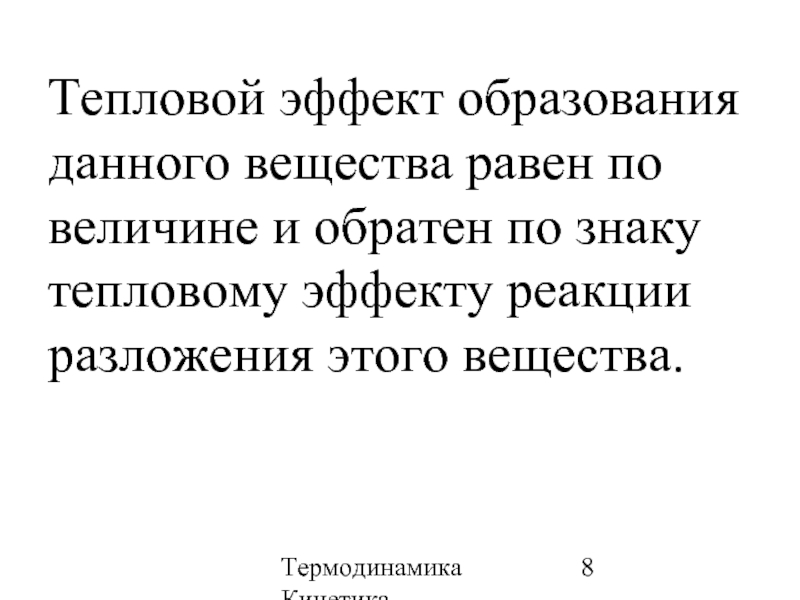 Тепловой эффект образования данного вещества равен по величине и обратен