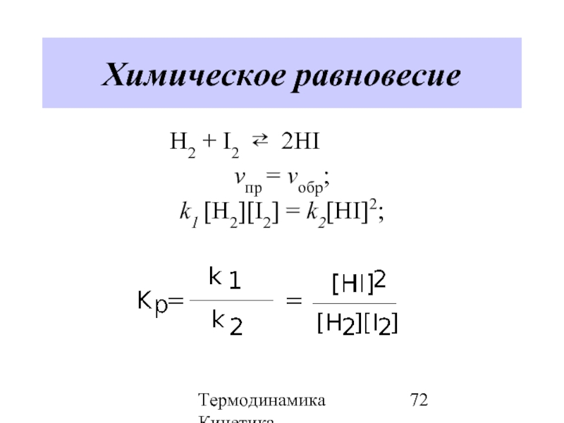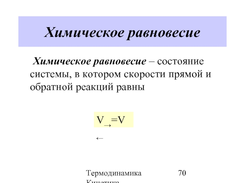 Химическое равновесие – состояние системы, в котором скорости прямой