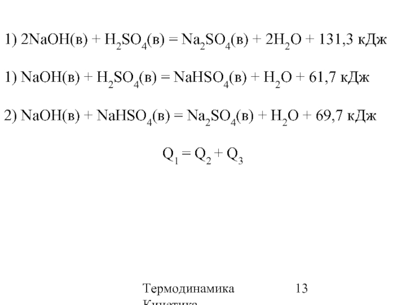 2) NaOH(в) + NaHSO4(в) = Na2SO4(в) + H2O + 69,7 кДж