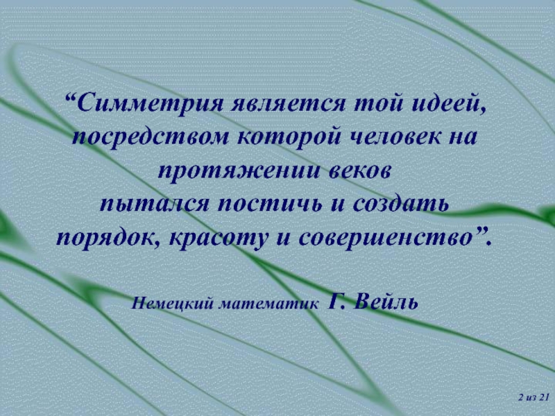 2. Если фигура некоторой прямой делится на две симметричные части, то ее называют симметричной относительно этой прямой. Прямая, относительно которой симметричны части фигуры, называются ………… симметрии.