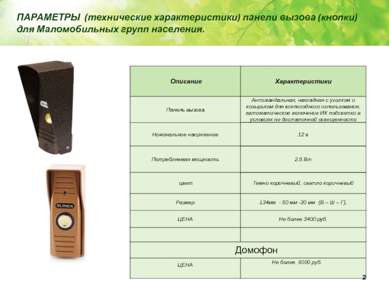 Место установки панели вызова