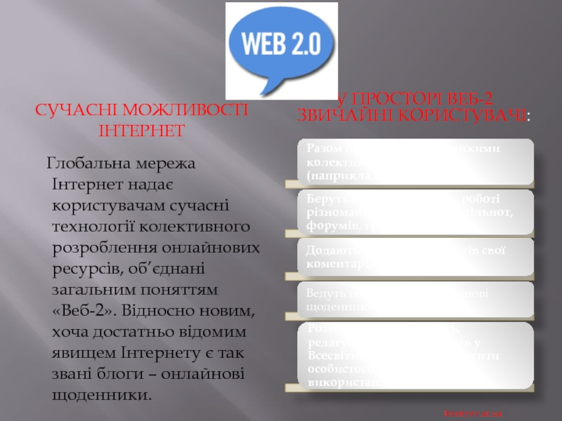 В Інтернеті порівняно легко знайти людей, які мають спільні з вами інтереси та схожі погляди на певні питання. Тому в мережі створюються й активно розвиваються інтернет-спільноти.
