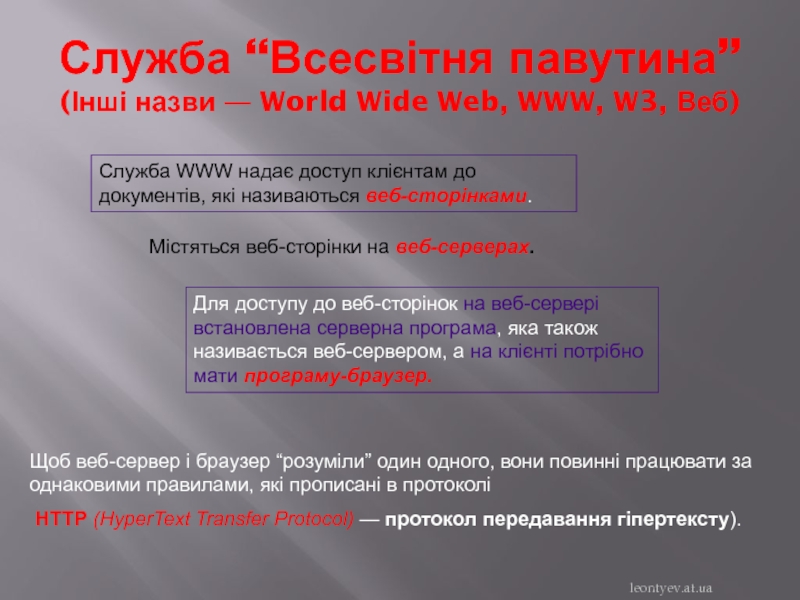 Використовується службою World Wide Web (WWW) для передачі Web-сторінок з усім їх вмістом
