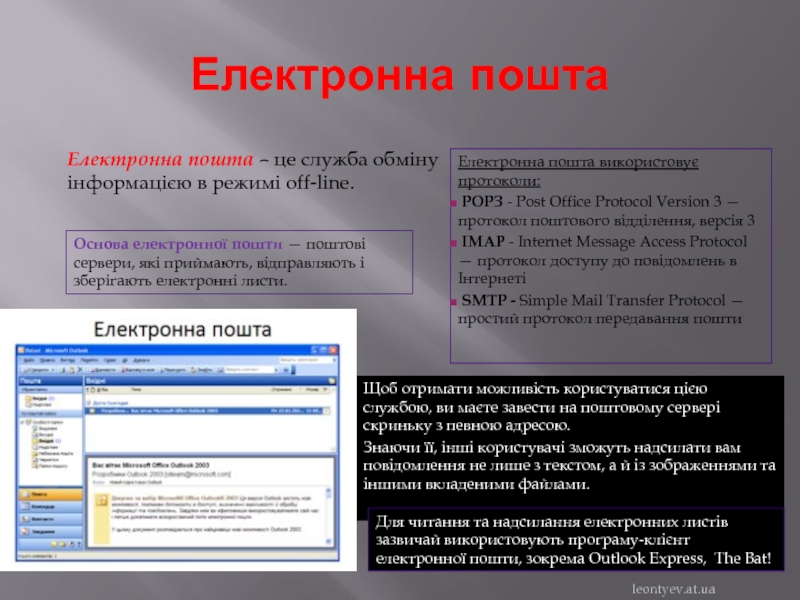 Електронна пошта – це служба обміну інформацією в режимі off-line.