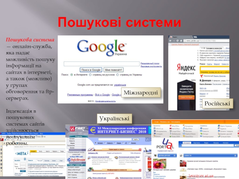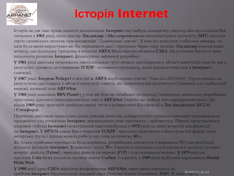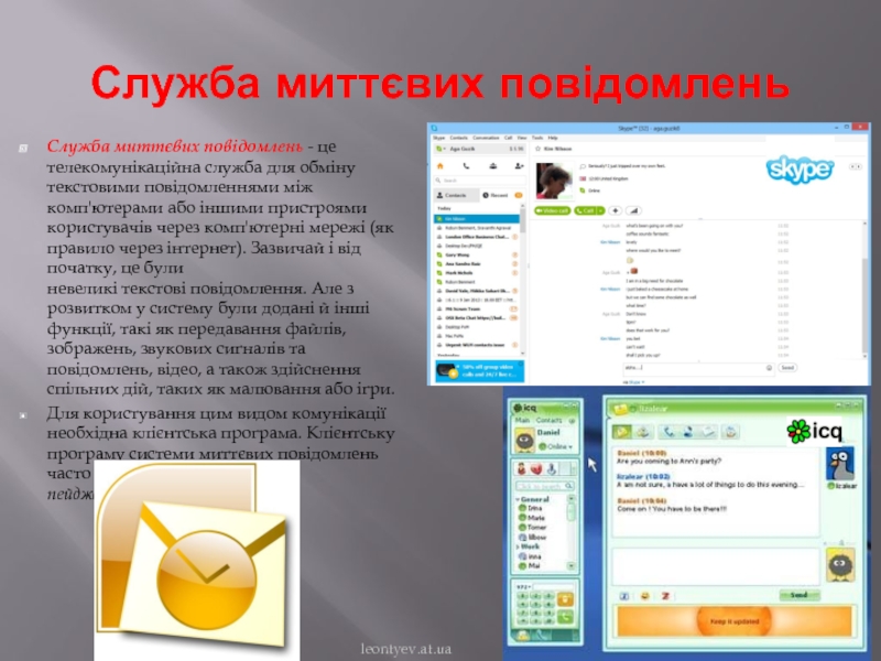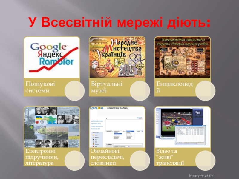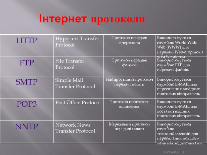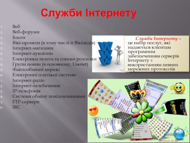 Служби Інтернету – це набір послуг, які надаються клієнтам програмним забезпеченням серверів Інтернету з використанням певних мережних протоколів