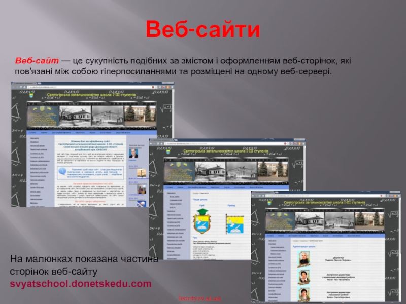 На малюнках показана частина сторінок веб-сайту svyatschool.donetskedu.com