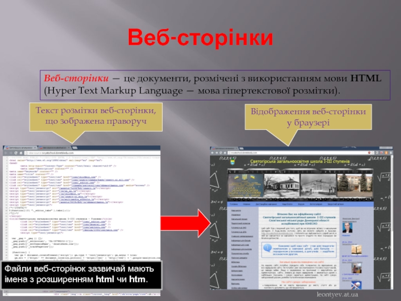 Файли веб-сторінок зазвичай мають імена з розширенням html чи htm.