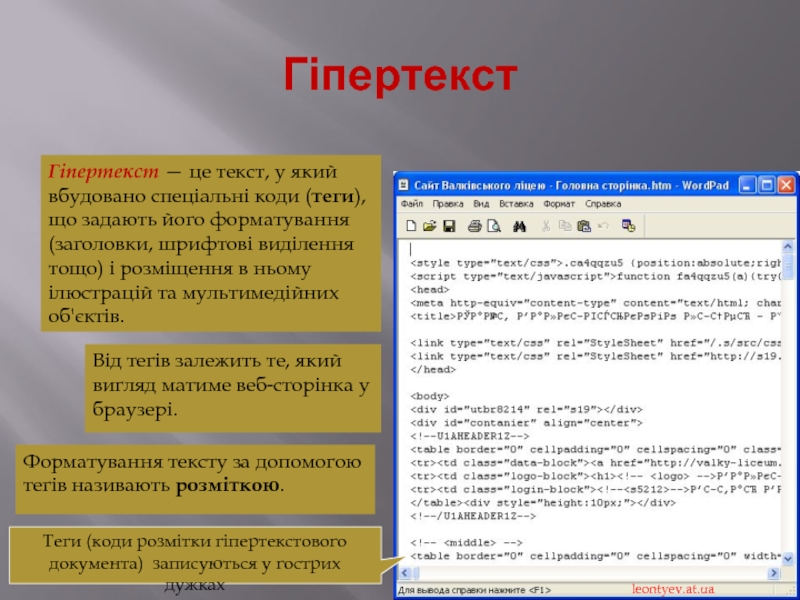Теги (коди розмітки гіпертекстового документа) записуються у гострих дужках