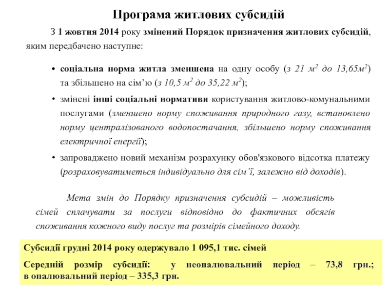 Субсидії грудні 2014 року одержувало 1 095,1 тис. сімей