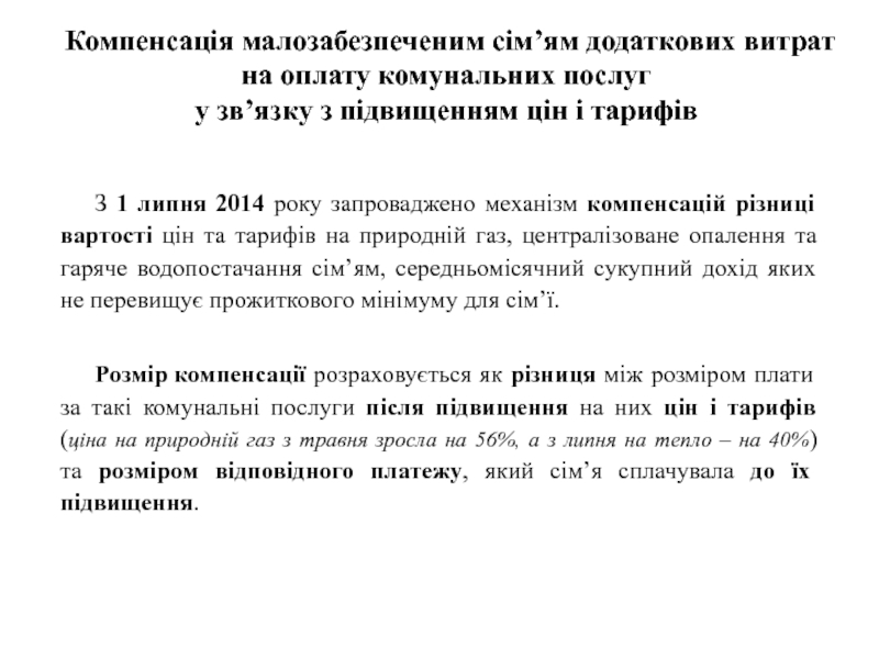 Компенсація малозабезпеченим сім’ям додаткових витрат