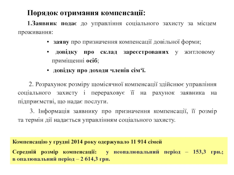 Компенсацію у грудні 2014 року одержувало 11 914 сімей