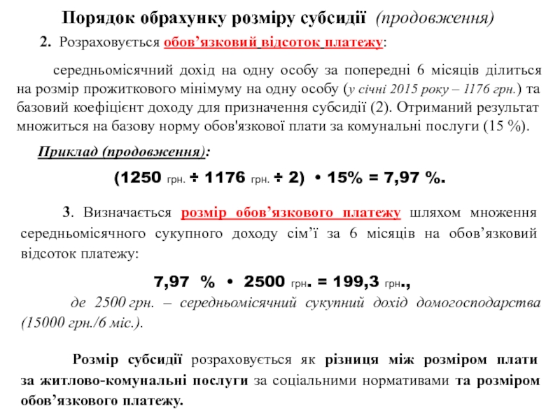 3. Визначається розмір обов’язкового платежу шляхом множення середньомісячного сукупного доходу сім’ї за 6 місяців на обов’язковий відсоток платежу: