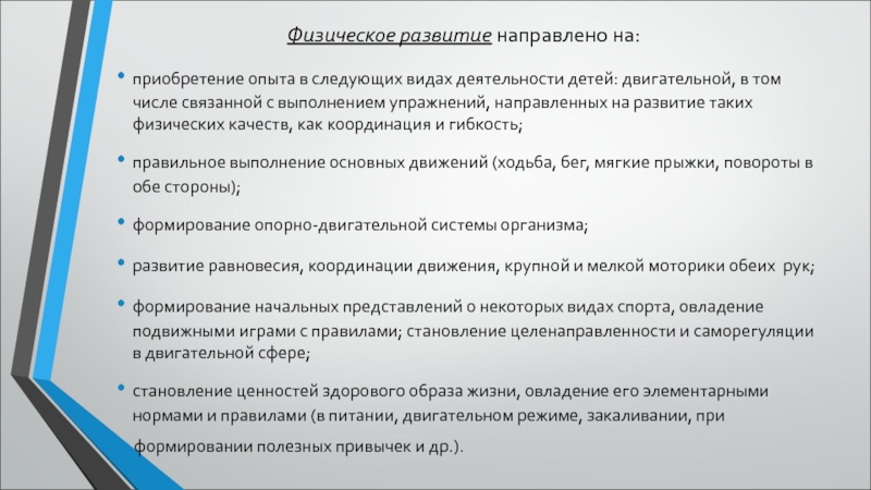 Слайд 23Физическое развитие направлено на: