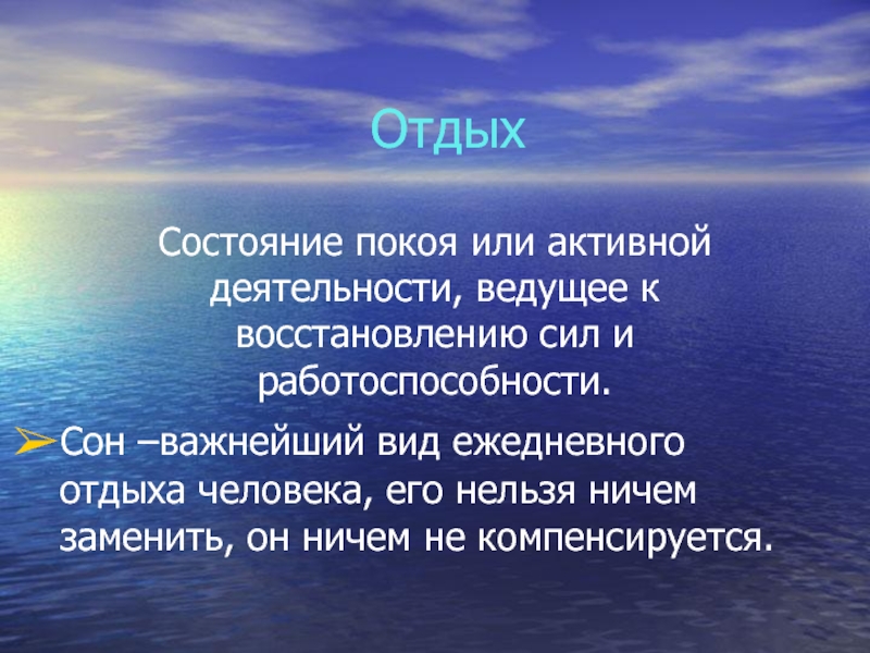 –важнейший вид ежедневного отдыха человека, его нельзя ничем заменить, он ничем не компенсируется.
