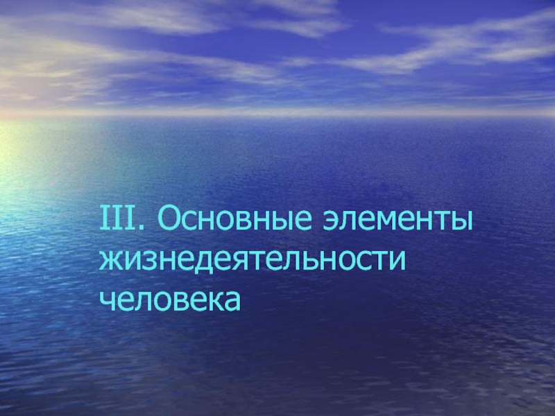 Слайд 4III. Основные элементы жизнедеятельности человека