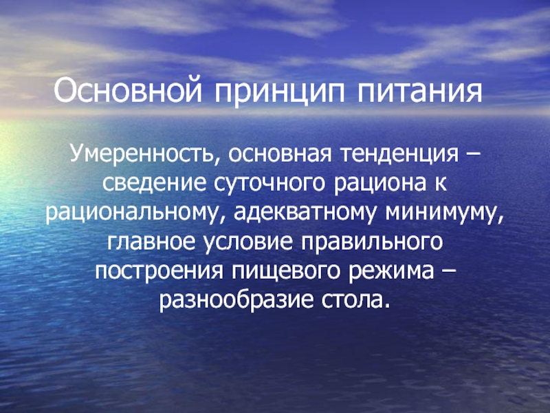 Умеренность, основная тенденция – сведение суточного рациона к рациональному,