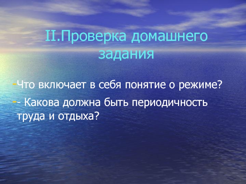 Слайд 1Основные элементы жизнедеятельности человека (умственная и физическая нагрузка, активный отдых, сон,