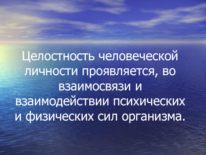 Слайд 11Целостность человеческой личности проявляется, во взаимосвязи и взаимодействии психических и физических