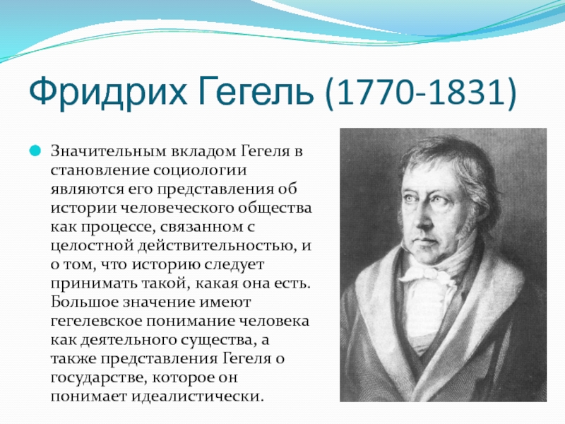 Значительным вкладом Гегеля в становление социологии являются его представления