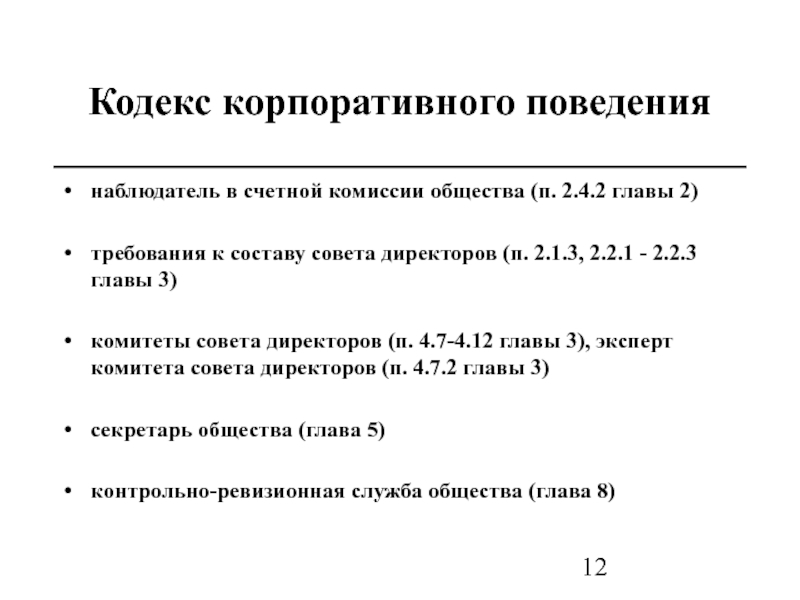 требования к составу совета директоров (п. 2.1.3, 2.2.1 - 2.2.3 главы 3)