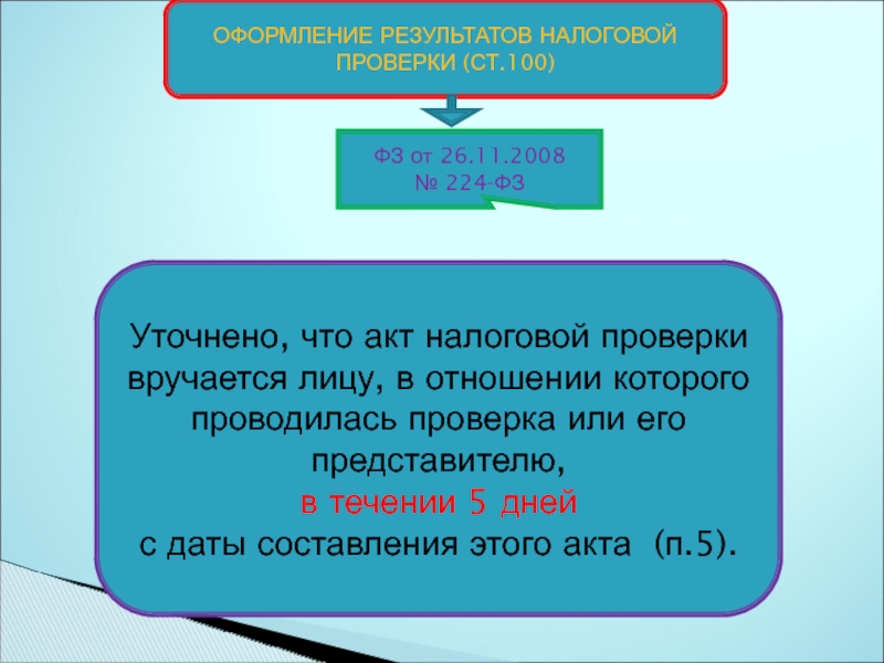 Слайд 5ОФОРМЛЕНИЕ РЕЗУЛЬТАТОВ НАЛОГОВОЙ ПРОВЕРКИ (СТ.100)