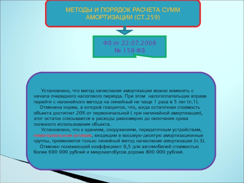 Слайд 13МЕТОДЫ И ПОРЯДОК РАСЧЕТА СУММ АМОРТИЗАЦИИ (СТ.259)