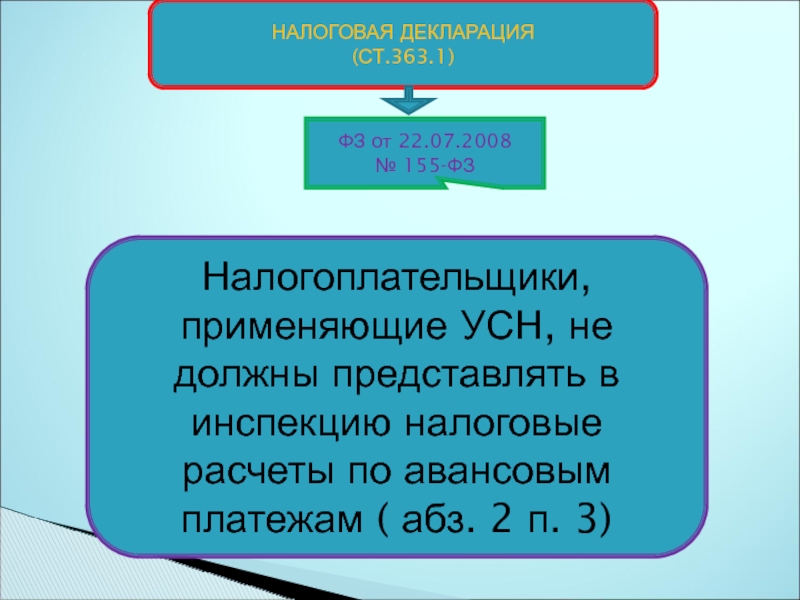 в инспекцию налоговые расчеты по авансовым платежам ( абз. 2 п. 3)