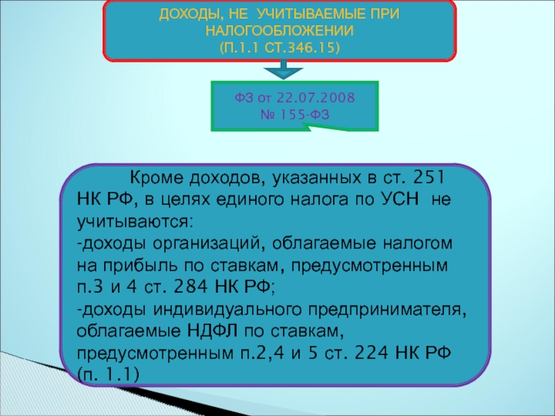 Слайд 18ДОХОДЫ, НЕ УЧИТЫВАЕМЫЕ ПРИ НАЛОГООБЛОЖЕНИИ