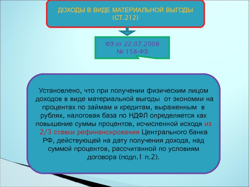Слайд 7ДОХОДЫ В ВИДЕ МАТЕРИАЛЬНОЙ ВЫГОДЫ (СТ.212)