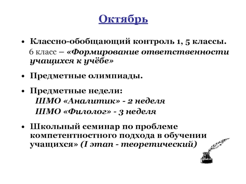 Школьный семинар по проблеме компетентностного подхода в обучении учащихся» (I этап - теоретический)