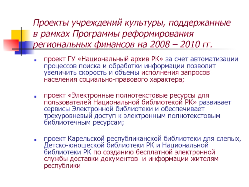 проект Карельской республиканской библиотеки для слепых, Детско-юношеской библиотеки РК и Национальной библиотеки РК по созданию бесплатной электронной службы доставки документов и информации жителям республики