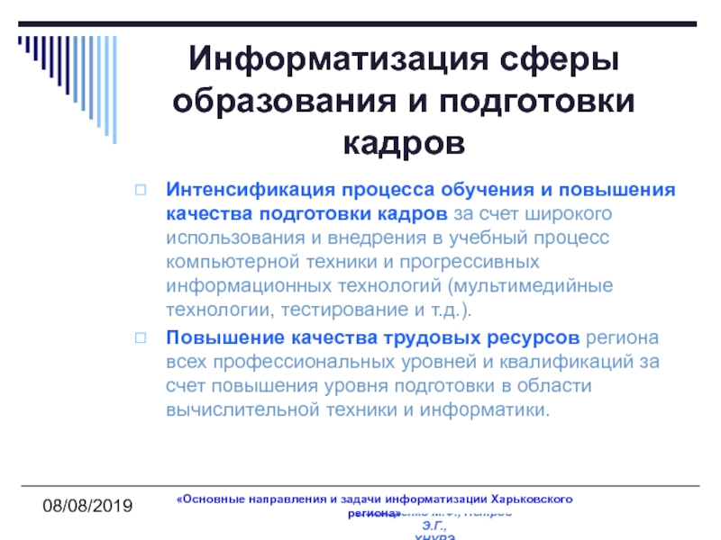 «Основные направления и задачи информатизации Харьковского региона»