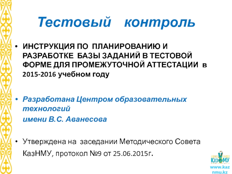 Утверждена на заседании Методического Совета КазНМУ, протокол №9 от 25.06.2015г.