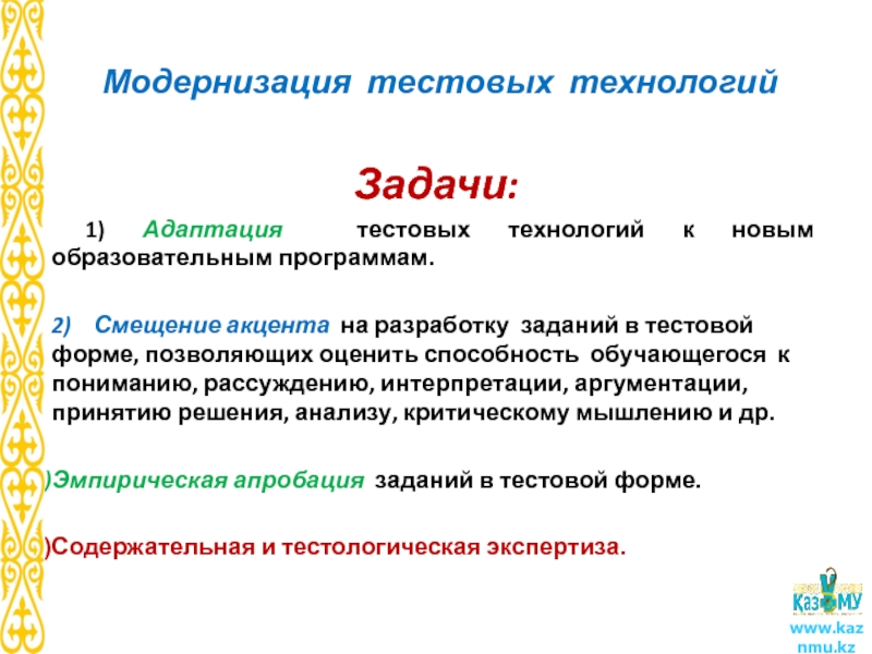 2)  Смещение акцента на разработку заданий в тестовой форме, позволяющих оценить способность обучающегося к пониманию, рассуждению, интерпретации, аргументации, принятию решения, анализу, критическому мышлению и др.