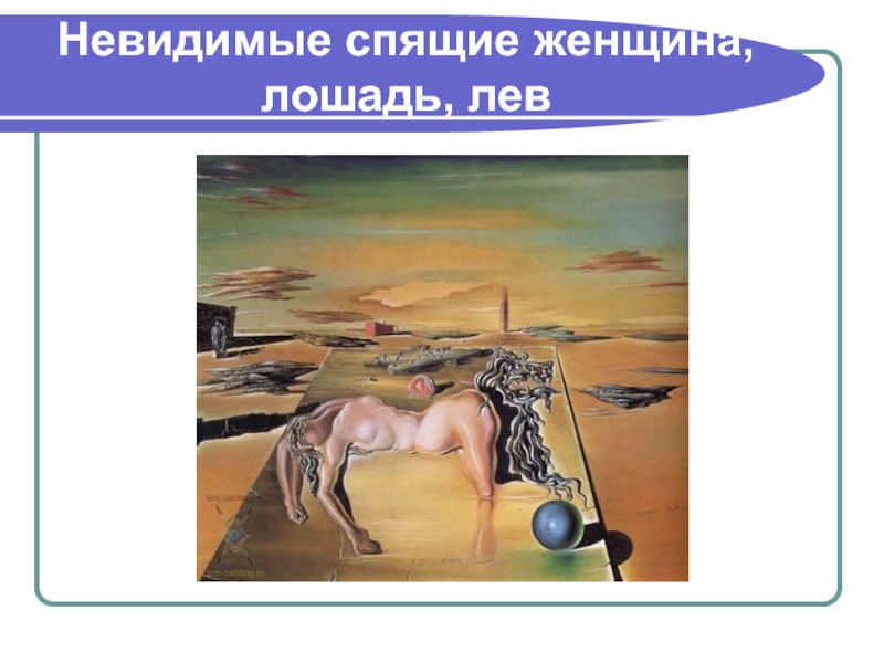 Слайд 14Невидимые спящие женщина, лошадь, лев