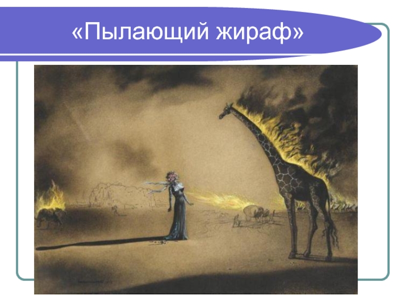 В работах соединяет фантастическое с реалистичным (образ пылающего жирафа на фоне пустыни)