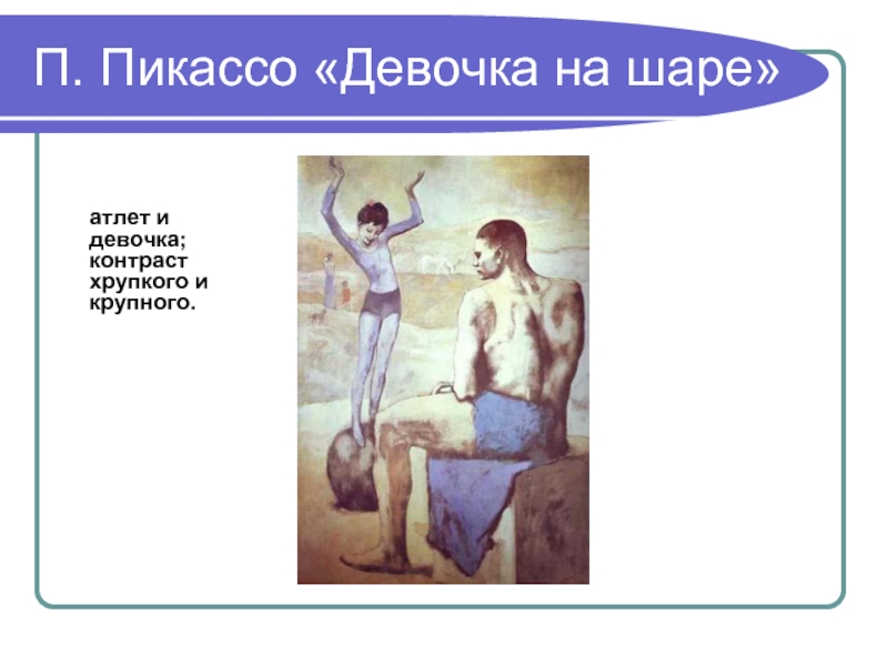Розовый период (использует тёплые тона, популярна тема цирка). Серия картин, посвящённых комедиантам «Девочка на шаре»