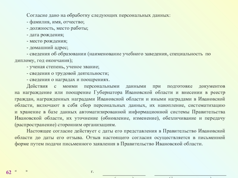 Представление о награждении высшей наградой Ивановской области – званием «Почетный гражданин Ивановской области»