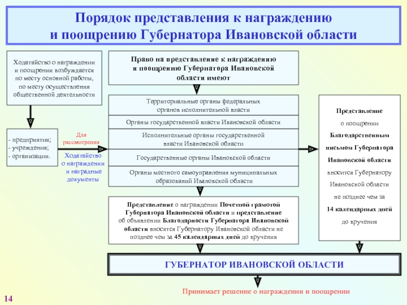 Строго руководствоваться положениями о наградах и поощрениях Ивановской областной Думы, Губернатора Ивановской области, утвержденными соответственно постановлениями