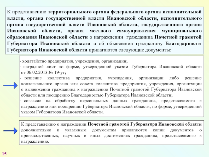 При представлении материалов к награждению наградами Ивановской области и иными наградами в Ивановской области необходимо руководствоваться следующими требованиями: