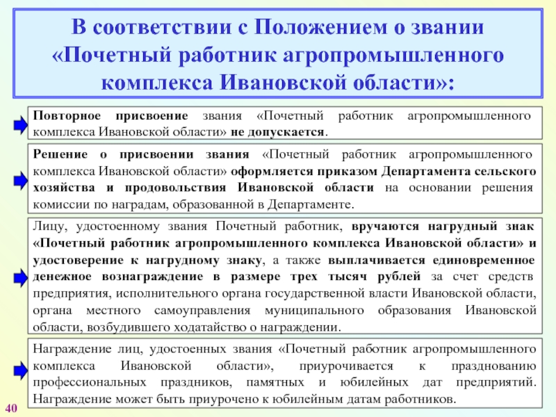 Строго руководствоваться положениями о ведомственных наградах Ивановской области –