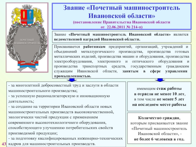 Ведомственные награды Ивановской области - почетные звания Ивановской области по профессиям