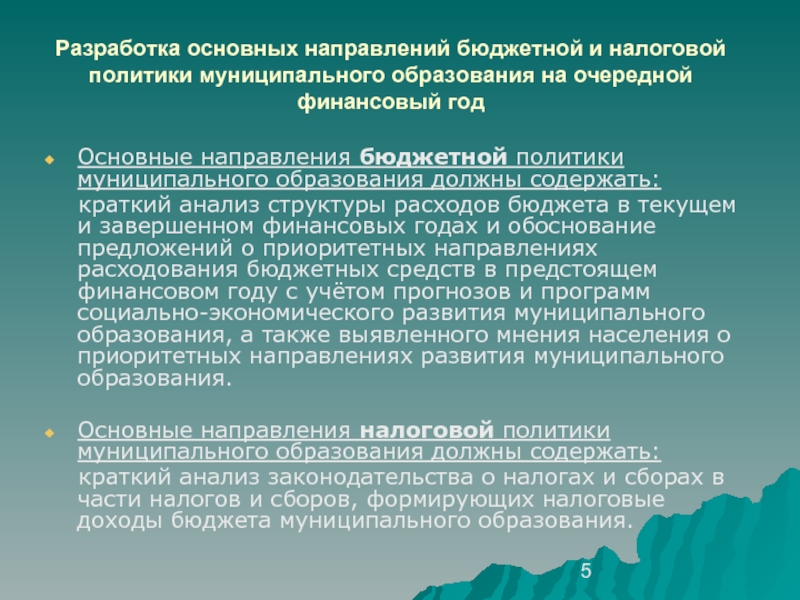 Основные направления бюджетной политики муниципального образования должны содержать:
