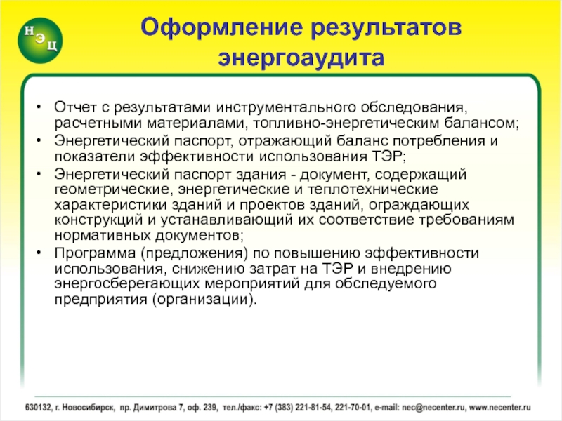По результатам проведения энергоаудита Новосибирским энергетическим центром