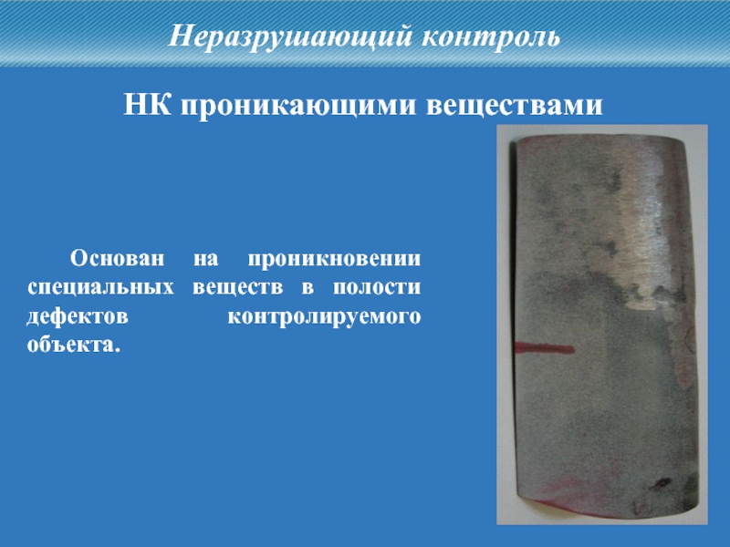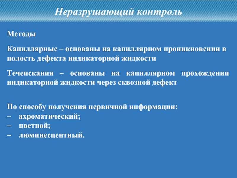 Течеискания – основаны на капиллярном прохождении индикаторной жидкости через сквозной дефект