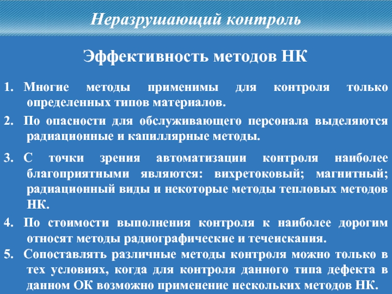 9. Большинство НМК кратковременны и требуют меньшей затраты человекочасов, чем типичные разрушающие методы испытаний.